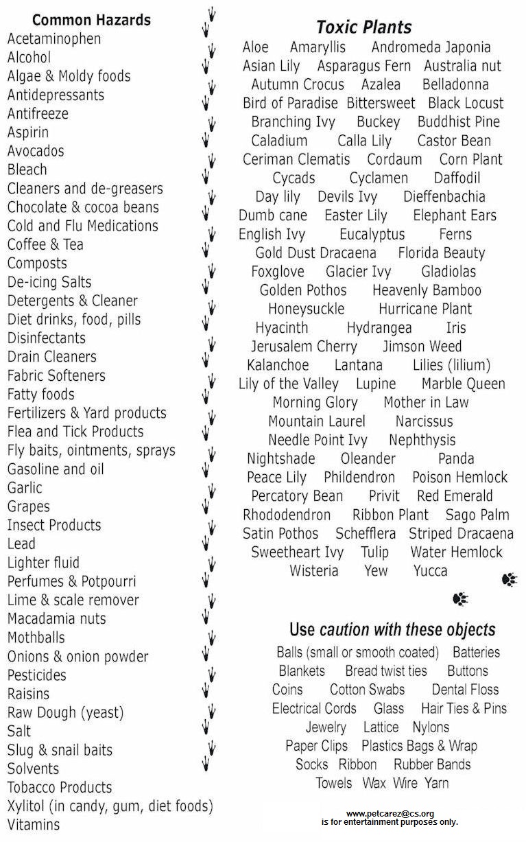 ANIMAL POISON COTROL HOTLINE 888-232-8870-NATIONAL POISON CONTROL 888-426-4435 Petcarez.org Carez